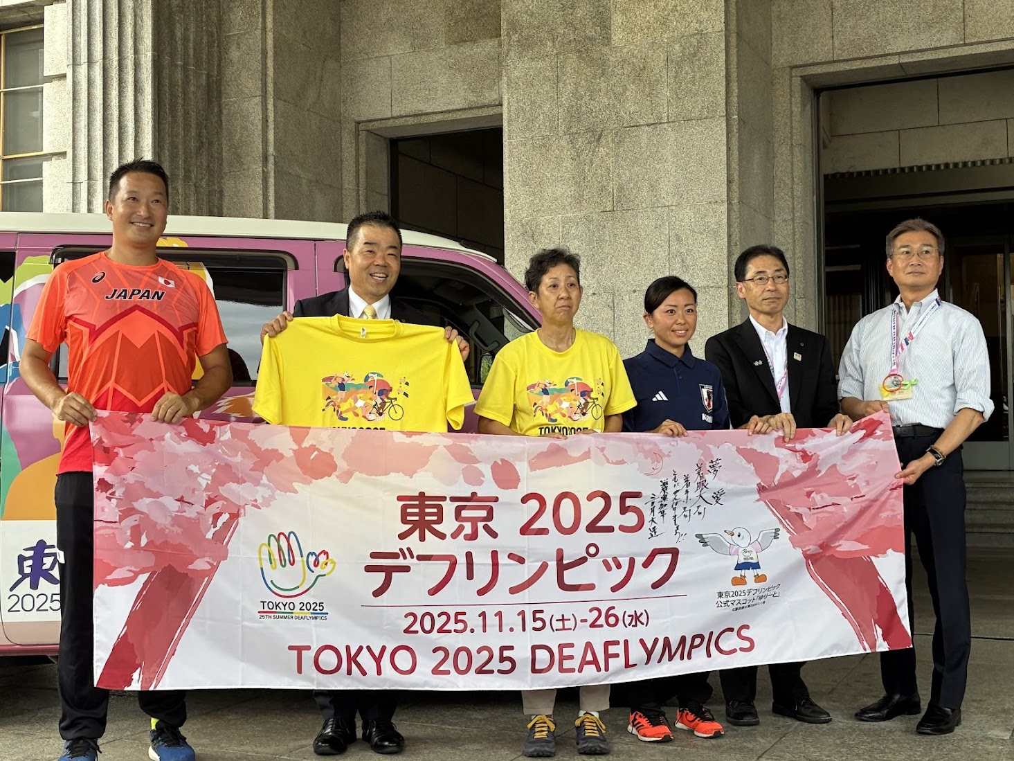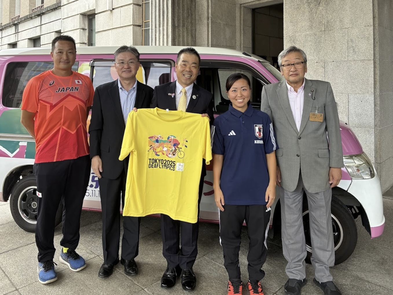 今年11月に日本で初開催される『東京2025デフリンピック』のPRを行うキャラバンカーの歓迎式が滋賀県庁で行われました。