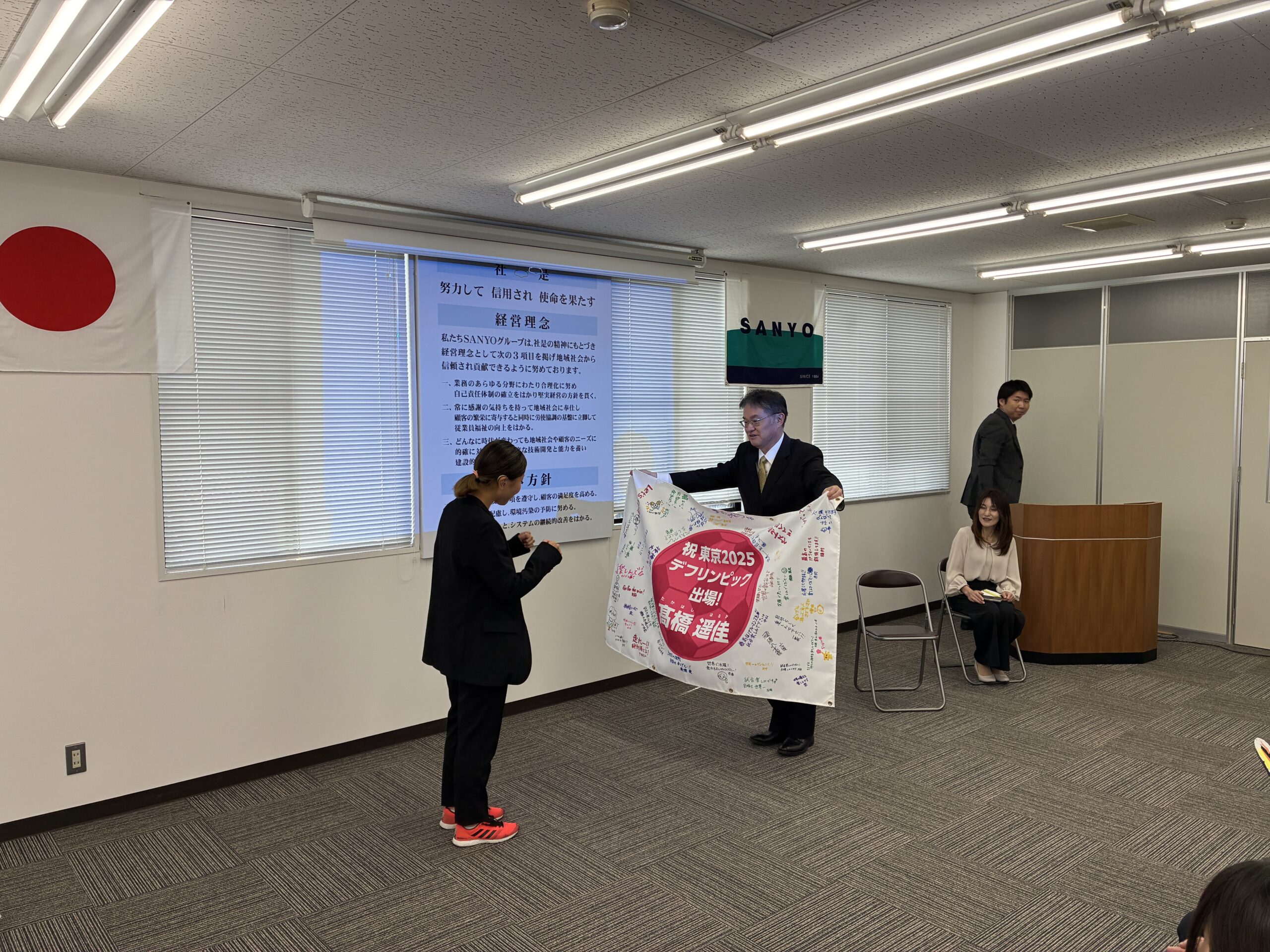 2025年11月15日~26日(12日間)より開催の『東京2025デフリンピック (種目:サッカー)』に出場する 弊社社員『高橋遥佳』さんの壮行会を行いました。 今月に行われる試合にも会社をあげて応援に行く予定です。 高橋さん、楽しんで頑張って下さい~!