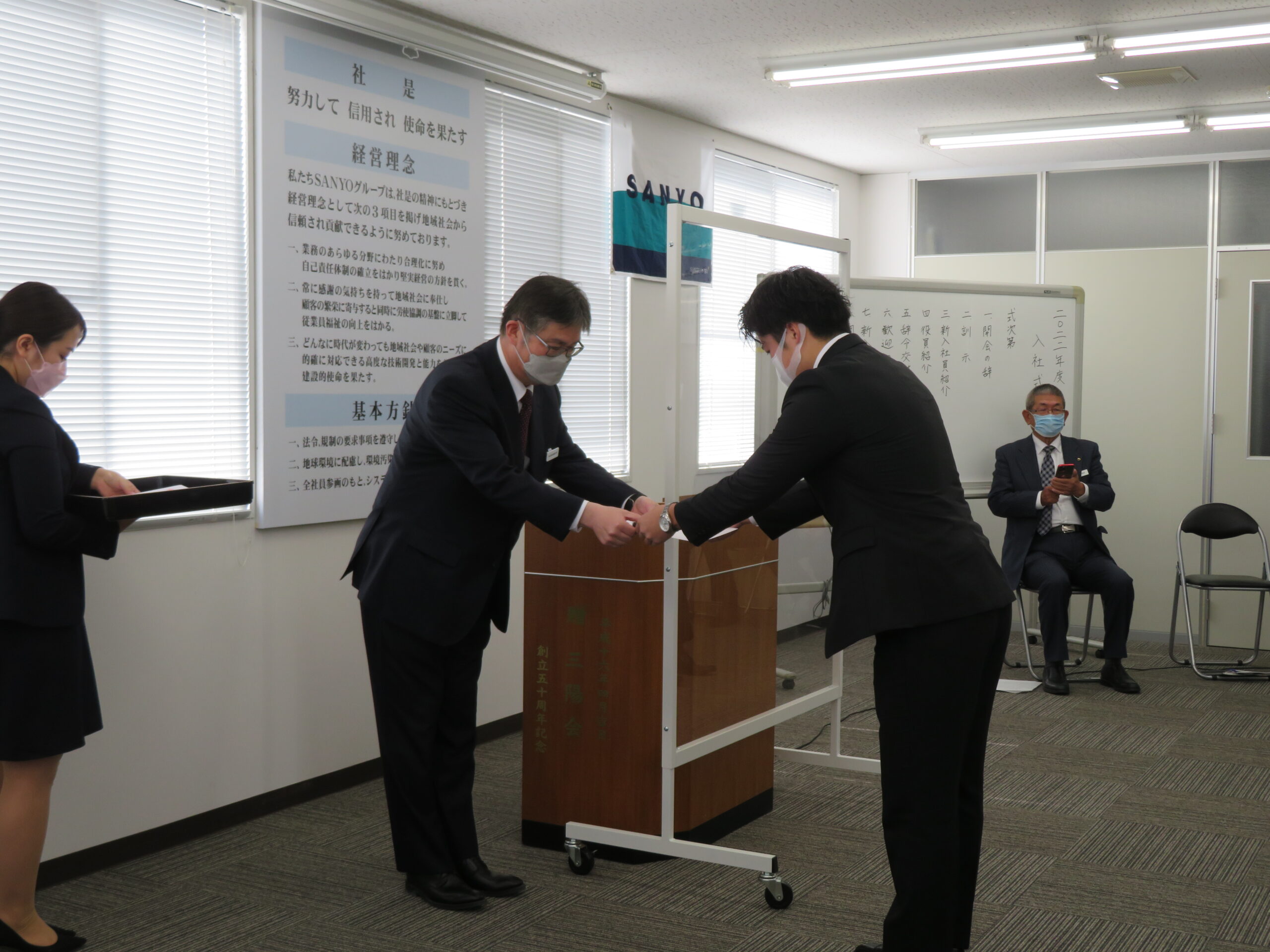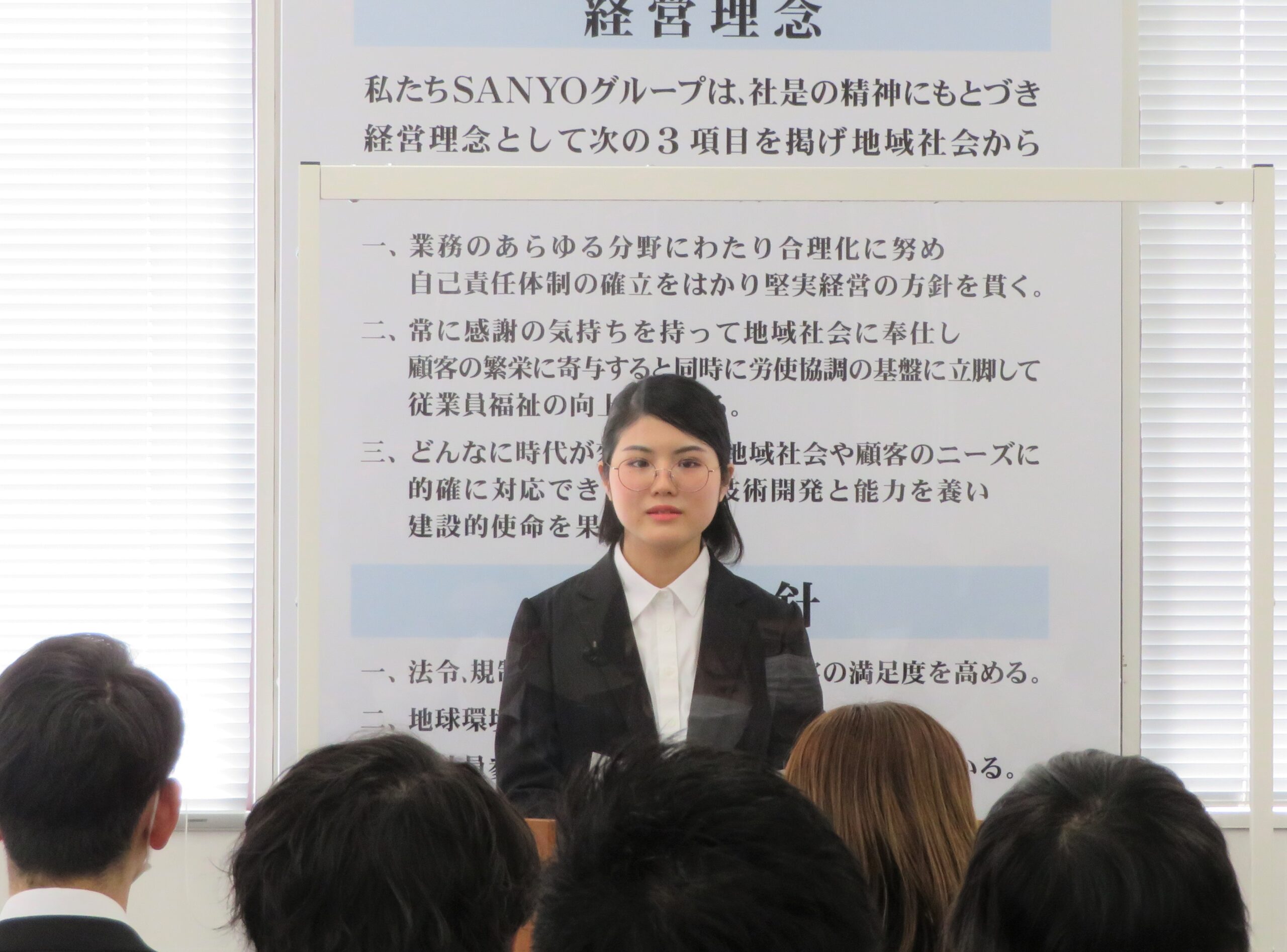 役員による訓示のあと、若手社員からの激励の言葉、新入社員による答辞等を行いました。