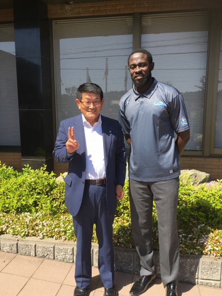 パートナーシップを結んでいる滋賀レイクスターズの ファイ・サンバ選手#3 が